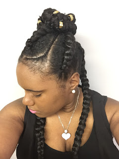 MARCH 2017On this naturalisa journey I must say I need to be creative about my look! I'm always trying something new and this time around it's no different. I have been on the go and running around so for this look I wanted to be simple and quick. Goddess Braids it is! Just two braids and I am good to go.