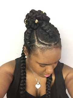 This time I thought to try some goddess braids. Not just any goddess braids but something out of the ordinary. You know I just can't follow the trend I need to set it!
