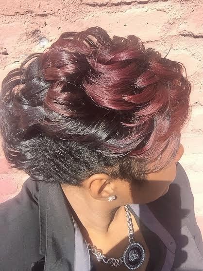 Fantasy colors I will say are difficult to achieve but here we pulled fast one. Stacey did a quick weave and added her own spin to this inspirational style.
