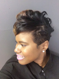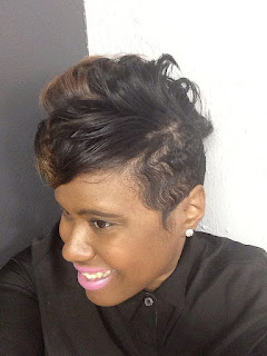 Since my short cut gives me a limitation as to how much of my hair can actually be put away only the top and middle of my hair is done and my sides are both cut low.